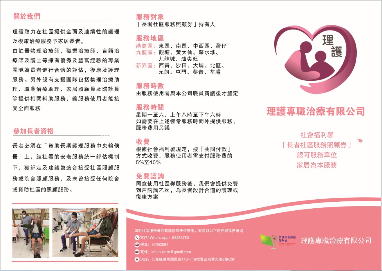 免责条款:社署长者资讯网内个别安老院及/或认可服务单位的服务概览所提供的资料只供参考之用。虽然社会福利署(社署)将定期更新服务概览内的资料并尽力确保这个网页上的资料准确无误,但社署并不对该等资料的准确性作出任何明示或隐含的保证。部份资料由安老院及/或认可服务单位提供和核实。如欲索取更多服务资料,请与个别安老院及/或认可服务单位联络或浏览个别安老院及/或认可服务单位网页。